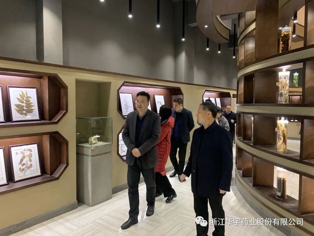 公司董事長蕭若人帶領丁副秘書長一行參觀了我公司一樓大廳中藥標本展示廳,逐一介紹“浙八味”展區、特色中藥炮制品區、中藥